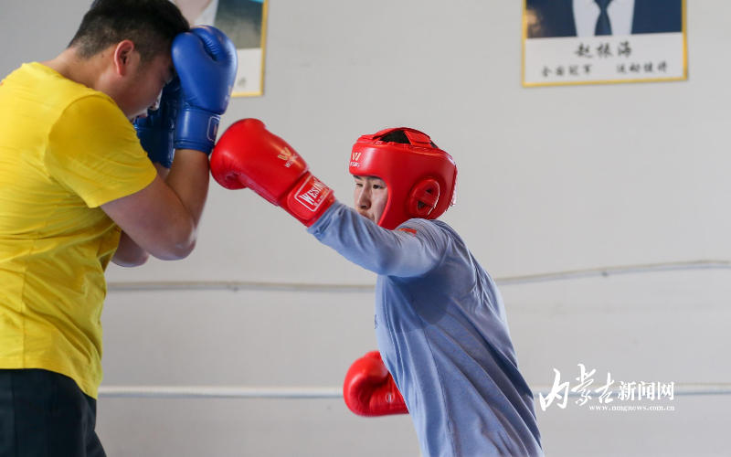 當(dāng)日,記者在拳擊館內(nèi)看到,在訓(xùn)練中李倩腳步輕盈,汗珠在額頭滑落。她戴上拳套,走向沙袋,一記記重拳砸出,發(fā)出沉悶的“砰”聲。內(nèi)蒙古女子拳擊隊(duì)的數(shù)十名拳手正在同時(shí)訓(xùn)練,沙袋晃動(dòng),呼吸急促,空氣中彌漫著汗水與堅(jiān)持的味道。“防守,腳下要穩(wěn)!”內(nèi)蒙古拳擊隊(duì)總教練哈達(dá)巴特爾的聲音在空間回蕩。李倩的訓(xùn)練格外嚴(yán)格。除了常規(guī)力量訓(xùn)練、反應(yīng)訓(xùn)練和體能循環(huán),她還要進(jìn)行一對(duì)一的與男拳手的實(shí)戰(zhàn)模擬,幾次交鋒下來(lái),氣息都愈發(fā)急促。但李倩沒(méi)有退縮,反而越打越穩(wěn),腳步靈活,出拳干凈利落。