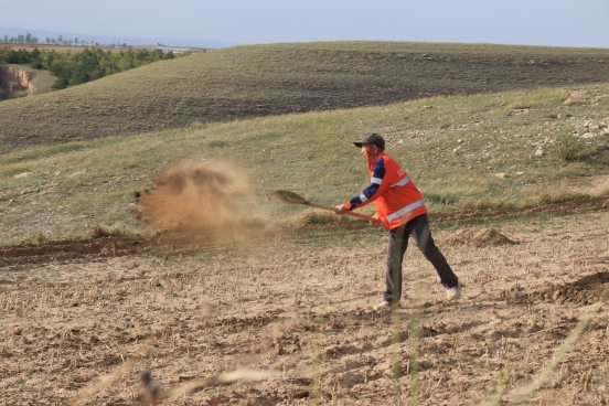 邊墻壕村是個小村莊,在村口遇見一對夫婦正在播種,據(jù)介紹全村現(xiàn)有20多戶人家四五十口人,年輕人都出去打工了,剩下些村民老人居多。讓我們再次把鏡頭對準邊墻下春播的百姓。