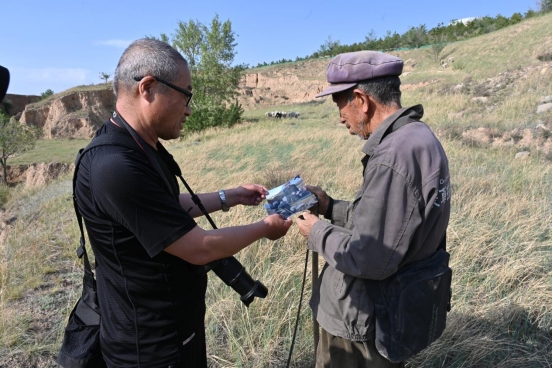 鏡頭見證滄桑,筆尖記錄百姓。這些年,只要疫情緩解,長城人沒有停下腳步,而是一次又一次去看長城、看邊堡、看邊墻下的鄉(xiāng)親們。車靜靜地行駛在空曠、蒼涼的長城腳下,76歲的牧羊人呂三良正在長城邊牧羊。2022年5月24日,呼和浩特市長城科普學會會員追隨牧羊人的腳步,把照片送到呂三良手中,看著老人端詳著照片里的自己,會員們特別滿足。這,難道就不是一個攝影人的長城情懷、百姓情懷嗎?(郭雁平 高曉梅)