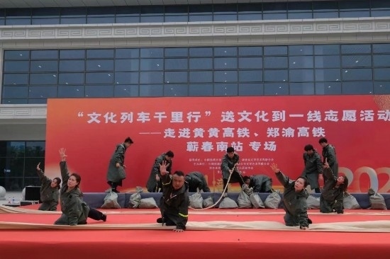 在黃黃高鐵蘄春南站、鄭渝高鐵興山綜合維修車間、浩吉鐵路襄州運(yùn)營(yíng)維修段舉行的三場(chǎng)活動(dòng)亦是精彩紛呈。由牛悅敏、候孟陽(yáng)、白石洋、李祥東、白愛(ài)潔、徐寧、王曉萍、周政輝、胡啟文、朵蘭、王瑛、蔣輝、以及幾十位武漢局集團(tuán)公司文藝志愿者的精彩節(jié)目輪番上演。優(yōu)美動(dòng)聽(tīng)的歌舞、經(jīng)典優(yōu)美的京劇、詼諧幽默的大鼓、驚險(xiǎn)刺激的雜技,還有《朱家河上的守堤人》等情景劇感人至深,活動(dòng)現(xiàn)場(chǎng)濃厚的文藝氛圍感染著每一位觀眾。本次活動(dòng)惠及鐵路沿線車務(wù)、機(jī)務(wù)、工務(wù)、供電、電務(wù)等系統(tǒng)職工和高鐵列車旅客3500余人。