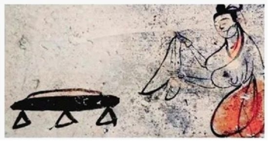 2003年,河南省登封市高村發(fā)掘了一座宋代壁畫墓,其中的“烙餅圖”非常生動寫實(shí)。畫中有3位女子,左側(cè)女子正在鏊子前持物翻餅,其右置一圓盒,內(nèi)有烙好的煎餅。鏊子呈穹廬狀鼓起,同現(xiàn)在常見的鐵鏊無異。中間女子正在矮案前持兩頭尖、中間粗的搟面棍搟制面皮。右側(cè)女子雙手托盤,似走卻又回首觀望。整幅壁畫色彩艷麗,人物各具情態(tài),栩栩如生。