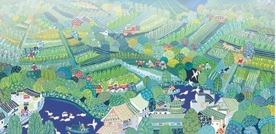農(nóng)民畫里的余東村。鄭利民繪
