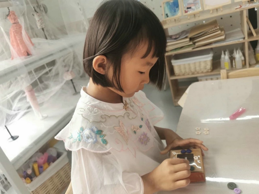 在布衣樣區(qū)域,小朋友親自制作艾草手工皂,通過繪畫艾草圖標設(shè)計禮盒、制作艾草工皂,用做好的艾草洗手,感受成果的喜悅。(記者 楊凈毓)