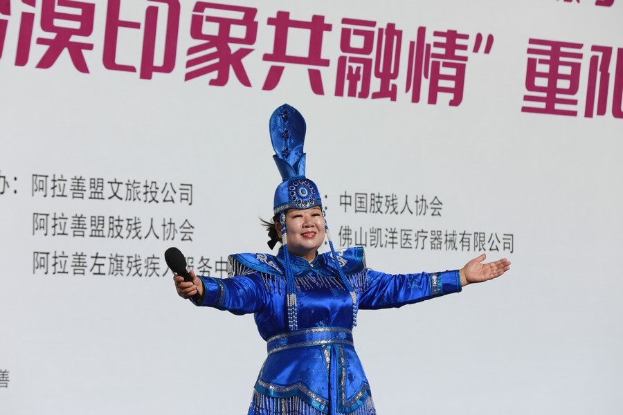 北疆新聞巴彥浩特10月11日電(記者 張楊)10月10日—11日,第三屆“沙漠印象”(2024)輪椅挑戰(zhàn)者大會暨首屆“愛老助殘 沙漠印象共融情”重陽節(jié)活動,在內(nèi)蒙古阿拉善夢想沙漠公園燃情開幕。著名女中音歌唱家索倫嘎傾情助力,在開幕式和頒獎儀式上,分別演唱了《蒙古馬》和《守望相助》,受到現(xiàn)場觀眾的熱情掌聲。