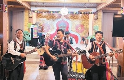 在云南省瀾滄拉祜族自治縣,拉祜族房東扎努的民宿在國慶節(jié)假期迎來滿房。今年4月,扎努改造自家老房子,把民族音樂與民宿相結(jié)合,開了一家音樂民宿——拉祜音宿?!袄镒迨悄芨枭莆璧拿褡?。我喜歡與人交流,喜歡鄉(xiāng)村風光和家鄉(xiāng)氣候,所以選擇回鄉(xiāng)開民宿?!弊鳛榉繓|,扎努常常帶游客一起唱歌跳舞,表演他創(chuàng)作的《我在瀾滄等你》《快樂拉祜》等歌曲,并向他們介紹拉祜族的民族歷史和文化。