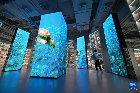 本屆訂貨會(huì),湖南出版展臺(tái)凸顯“文化+科技”的深度融合。在精品書臺(tái)上方的天幕屏上,一幅輝映湖湘文化神韻的人文山水長(zhǎng)卷徐徐展開,滾動(dòng)播放著2024年度“中南好書”的書封和簡(jiǎn)介。