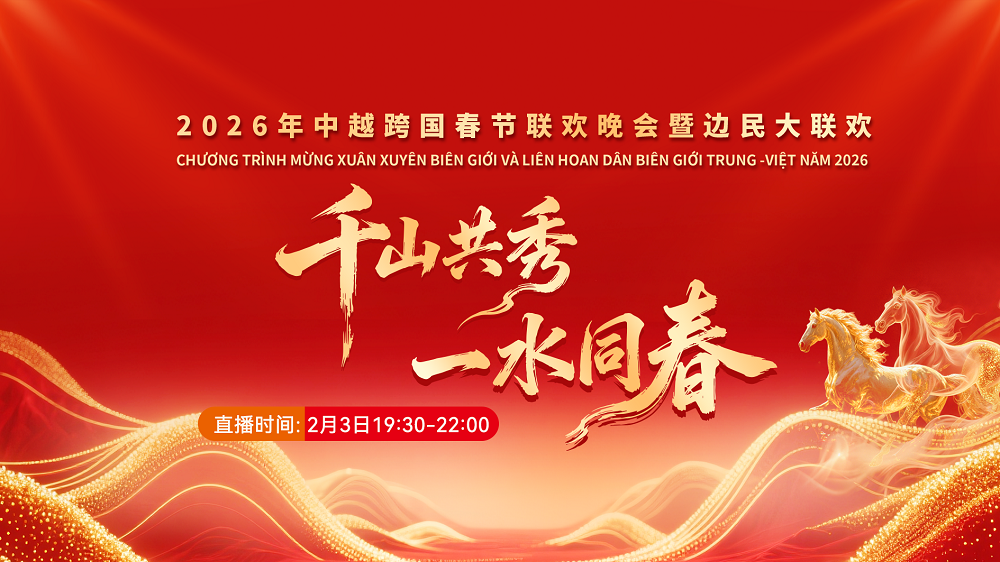 【直播簡介】2月2日至2月3日,2026年中越跨國春節(jié)聯(lián)歡晚會暨邊民大聯(lián)歡活動相繼在越南老街省、中國云南省紅河州舉行。兩國人民以文化為橋梁,以友誼為紐帶,進一步鞏固中越地方友好合作關(guān)系,構(gòu)建具有戰(zhàn)略意義的中越命運共同體。2月3日晚19:30至22:00,中央廣播電視總臺央視頻將聯(lián)動25家主流媒體,現(xiàn)場直播在紅河州河口縣舉行的2026年中越跨國春節(jié)聯(lián)歡晚會,帶您沉浸式體驗兩國藝術(shù)家跨越國界的精彩文化盛宴,感受中越兩國人民“同飲一江水、攜手共發(fā)展”的深情厚誼,共度一個喜慶祥和、心手相連的跨國春夜。