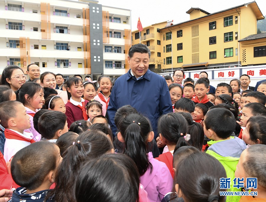 習(xí)近平首先來到中益鄉(xiāng)小學(xué)。學(xué)校操場上,小學(xué)生們正在開展課外文體活動??吹娇倳泚砹耍瑢W(xué)生們圍攏過來,紛紛問習(xí)爺爺好,總書記高興地同大家交談,詢問他們學(xué)習(xí)和生活情況。中益鄉(xiāng)地處大山深山之中,群眾居住比較分散,孩子上學(xué)是個難題。習(xí)近平指出,“兩不愁三保障”,很重要的一條就是義務(wù)教育要有保障。再苦不能苦孩子,再窮不能窮教育。要保證貧困山區(qū)的孩子上學(xué)受教育,有一個幸??鞓返耐辍A?xí)近平走進(jìn)師生食堂,仔細(xì)察看餐廳、后廚,了解貧困學(xué)生餐費補貼和食品安全衛(wèi)生情況。習(xí)近平囑咐學(xué)校和老師既要當(dāng)好老師,又要當(dāng)好臨時家長,把學(xué)生教好、管好。要把安全放在第一位,確保學(xué)生在學(xué)校學(xué)、住、吃都安全,讓家長們放心。他希望老師們扎根山區(qū),獻(xiàn)身鄉(xiāng)村教育事業(yè),為群眾脫貧貢獻(xiàn)一份力量。