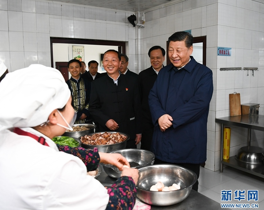 這是4月15日下午,習(xí)近平在石柱土家族自治縣中益鄉(xiāng)小學(xué)走進(jìn)師生食堂,了解貧困學(xué)生餐費補貼和食品安全衛(wèi)生情況。 新華社記者 謝環(huán)馳 攝