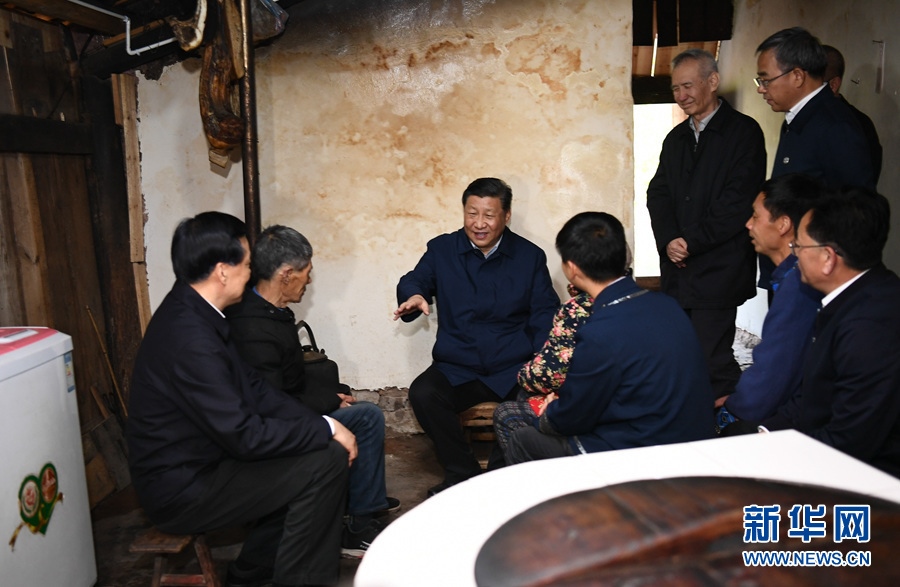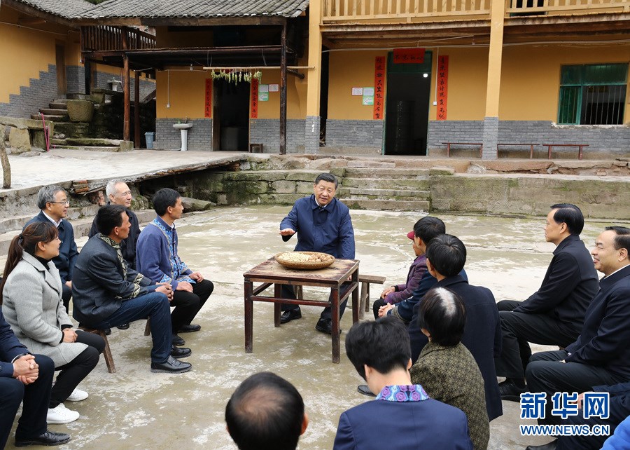 這是4月15日下午,習(xí)近平在石柱土家族自治縣中益鄉(xiāng)華溪村看望貧困戶譚登周一家。 新華社記者 劉彬 攝