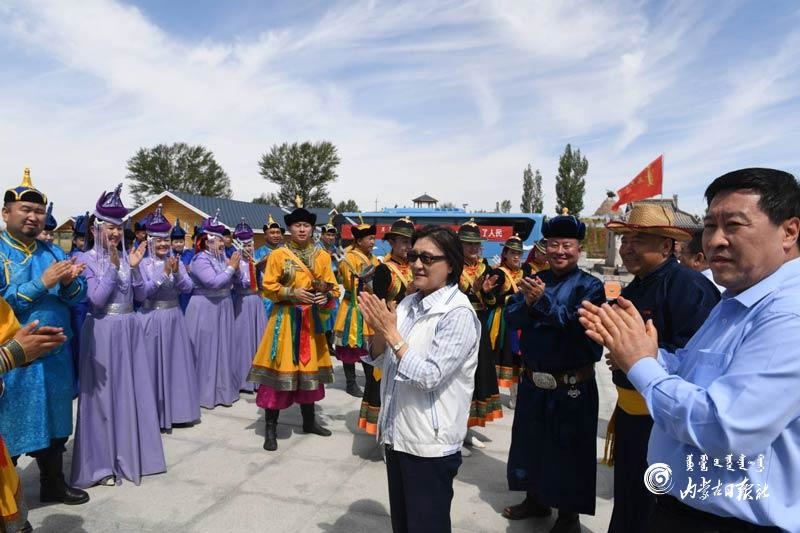 布小林來(lái)到烏審旗烏蘭陶勒蓋鎮(zhèn)巴音高勒嘎查,烏審旗烏蘭牧騎正在這里進(jìn)行惠民演出。她與農(nóng)牧民群眾一起認(rèn)真觀看演出,并與烏蘭牧騎隊(duì)員們親切交流,勉勵(lì)大家牢記習(xí)近平總書(shū)記的殷切囑托,永遠(yuǎn)做“草原上的紅色文藝輕騎兵”。她指出,烏蘭牧騎精神是我們擁抱新時(shí)代、奮進(jìn)新時(shí)代的重要精神動(dòng)力,要大力弘揚(yáng)烏蘭牧騎精神,緊緊依靠人民,不斷造福人民。