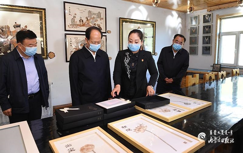 8月10日,自治區(qū)黨委書(shū)記、人大常委會(huì)主任石泰峰來(lái)到興安盟阿爾山市白狼鎮(zhèn)林俗文化產(chǎn)業(yè)發(fā)展有限公司,了解樹(shù)皮畫(huà)產(chǎn)業(yè)助力脫貧和非遺項(xiàng)目傳承發(fā)展情況。內(nèi)蒙古日?qǐng)?bào)記者 袁永紅 攝