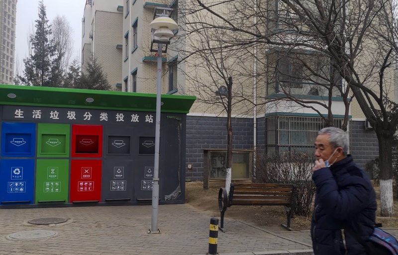 1月20日,呼和浩特市一名居民在政府投放進小區(qū)的生活垃圾分類投放站前走過。呼和浩特市是自治區(qū)唯一入選的全國首批實施生活垃圾強制分類的46個重點城市之一。根據(jù)要求,2019年底,全市公共機構(gòu)和中小學幼兒園全部推行垃圾分類,到2020年底,垃圾回收利用率將達到35%以上。分布在全市各小區(qū)的可回收垃圾智能分類箱依托移動互聯(lián)網(wǎng)、大數(shù)據(jù)、物聯(lián)網(wǎng)等方式,通過信息化手段,從垃圾分類宣傳、投遞、收集、處理等方面著手,對垃圾分類各個環(huán)節(jié)進行智能化管理,以積分激勵的形式逐步培養(yǎng)轄區(qū)居民垃圾分類的好習慣。