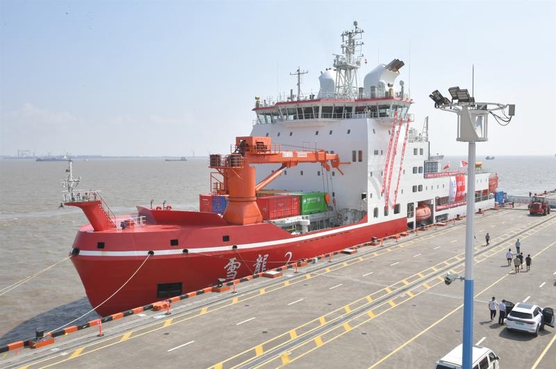 “雪龍2”號(hào)科考破冰船圓滿完成中國(guó)第12次北極科學(xué)考察任務(wù)順利返航。自然資源部供圖