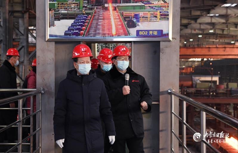 12月15日,自治區(qū)黨委書記、人大常委會主任石泰峰來到包鋼(集團(tuán))公司,了解2號大型萬能軋鋼生產(chǎn)線建設(shè)情況。內(nèi)蒙古日報(bào)社融媒體記者 袁永紅 攝