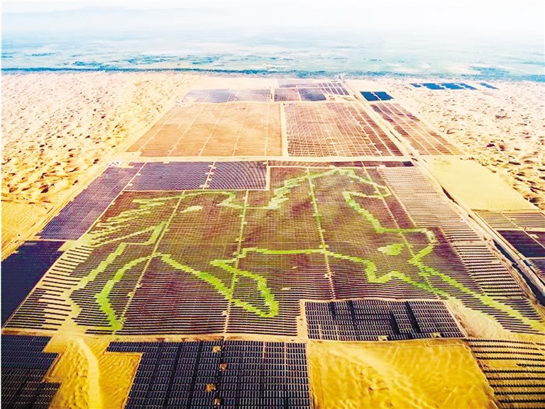 駿馬奔騰似潮涌,一日千里獨(dú)行空。庫(kù)布其沙漠腹地,由196320塊藍(lán)色光伏板組成的駿馬圖栩栩如生,格外吸睛。內(nèi)蒙古現(xiàn)代能源經(jīng)濟(jì),一如這昂首奔騰的駿馬,向著“雙碳”目標(biāo)奮蹄疾馳。(記者 許曉嵐 康麗娜)
