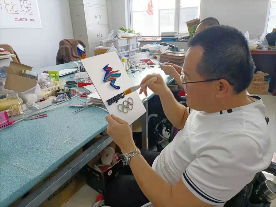 呼和浩特市殘聯(lián)相關(guān)負(fù)責(zé)人介紹,用盤扣工藝制作的北京冬奧會(huì)、冬殘奧會(huì)會(huì)徽,是將此工藝與服裝脫離開(kāi)來(lái),以裝飾畫的形式展現(xiàn)。中式盤扣具有紐帶和橋梁意義,借此表達(dá)內(nèi)蒙古殘疾人對(duì)北京冬奧會(huì)和冬殘奧會(huì)的關(guān)注,也讓內(nèi)蒙古殘疾人堅(jiān)韌不拔、自強(qiáng)不息的精神以這個(gè)作品為紐帶傳播到世界各地。