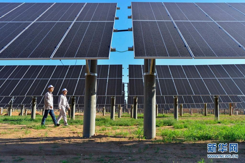 鄂爾多斯市伊金霍洛旗通過(guò)光伏項(xiàng)目治理采煤沉陷區(qū)生態(tài)。新華網(wǎng)發(fā)(王正 攝)