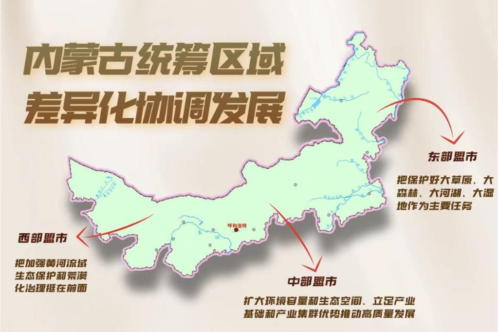 近年,內(nèi)蒙古按照主體功能區(qū)定位統(tǒng)籌區(qū)域差異化協(xié)調(diào)發(fā)展:東部盟市把保護(hù)好大草原、大森林、大河湖、大濕地作為主要任務(wù);中部盟市擴(kuò)大環(huán)境容量和生態(tài)空間、立足產(chǎn)業(yè)基礎(chǔ)和產(chǎn)業(yè)集群優(yōu)勢(shì)推動(dòng)高質(zhì)量發(fā)展;西部盟市把加強(qiáng)黃河流域生態(tài)保護(hù)和荒漠化治理挺在前面。