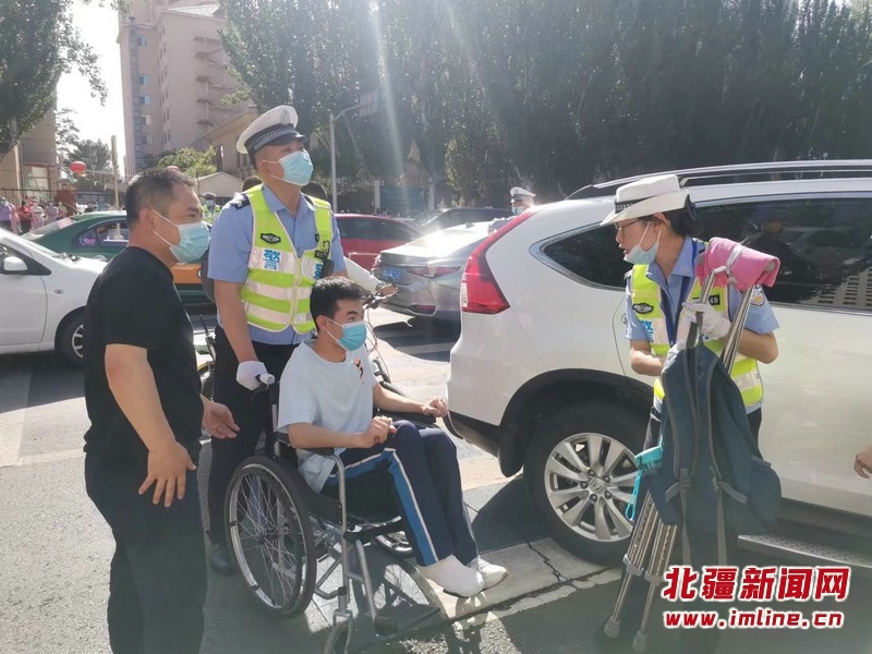 現(xiàn)場最讓感動的是,一位腳扭傷的考生,在兩名交警的幫助下坐上輪椅進入考場。“有了他們的幫助,減少了我們的焦慮,心情輕松了很多,而且今天早早就來到了考場?!笨忌议L介紹,昨天看考場時,交警同志得知孩子的腳扭傷后,今天特意趕來護送學(xué)生進入考場。