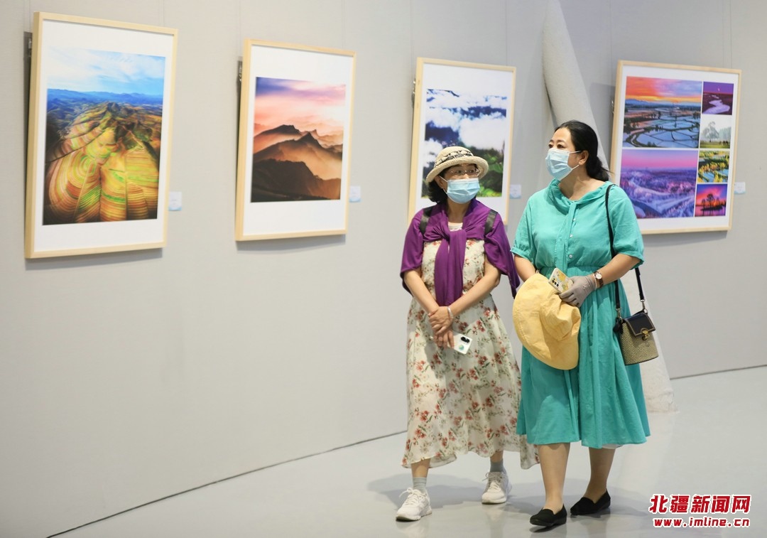 觀眾在參觀內(nèi)蒙古風(fēng)光攝影展