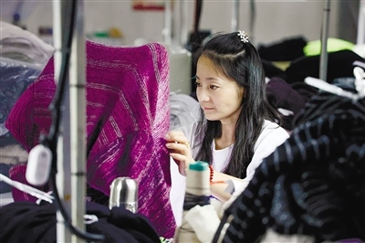 章嘉廟村一羊絨制品廠的工人正在趕制訂單。本報記者馬駿馳攝
