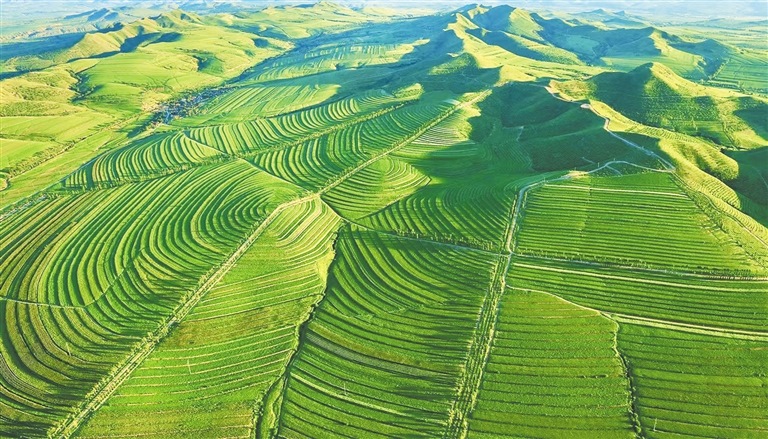 如今,薩力巴萬畝梯田、豐收萬畝梯田、新地萬畝梯田在敖漢旗大地依次呈現(xiàn),全旗梯田保存面積達(dá)120萬畝,將中部丘陵地區(qū)“雞爪子溝”劃出的貧窮“等高線”變作群山出金、河流淌銀的“米糧川”。