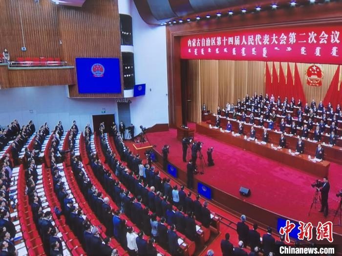 圖為內蒙古自治區(qū)十四屆人大二次會議現場?! ±類燮?攝
