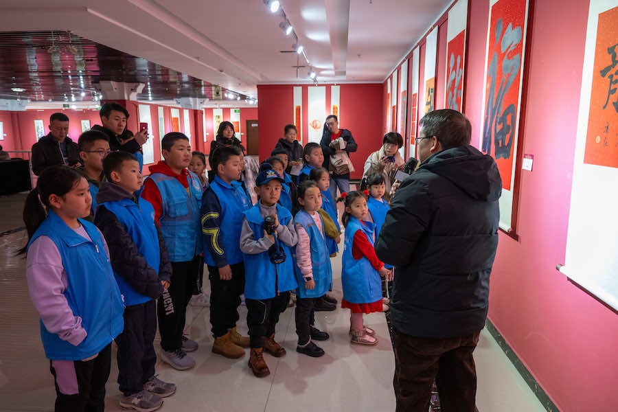 活動現場,20余名小朋友在家長的陪同下,參觀了“藝美北疆 遇見青城”——呼和浩特市百福迎春賀歲作品展”和“藝美北疆 新春納?!薄厣夏?nbsp;水墨集中國書畫名家邀請展,小朋友在呼和浩特美術館老師的講解下,了解了春節(jié)貼“?!弊质俏覈耖g由來已久的風俗,“福”文化更是中華優(yōu)秀傳統(tǒng)文化的組成部分,激發(fā)了小朋友們對傳統(tǒng)文化的熱愛。