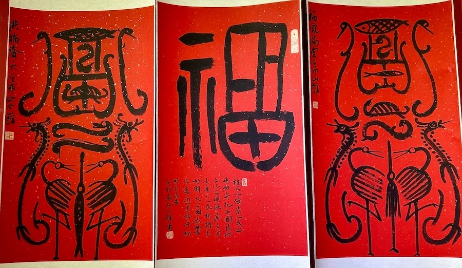 “媽媽我又認識了一個‘?!?,原來元宵節(jié)也要貼‘福’字,還要貼吉祥的畫,我還要和玉兔一起吃元宵?!?歲的陳昭穎參觀完百福迎春賀歲作品展后因為認識一個“?!弊珠_心地說。