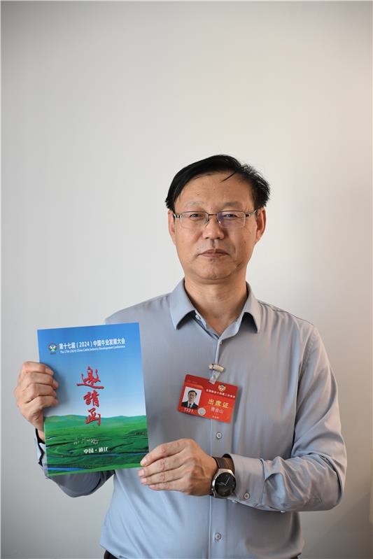 “2024年盛夏,我們將迎來第十七屆中國牛業(yè)發(fā)展大會。今年全國兩會,我?guī)砹诉@份來自通遼市的邀請函?!币姷接浾邅碓L,全國政協(xié)委員、通遼市副市長曹金山從行李箱里拿出了精心準備的中國牛業(yè)發(fā)展大會邀請函。