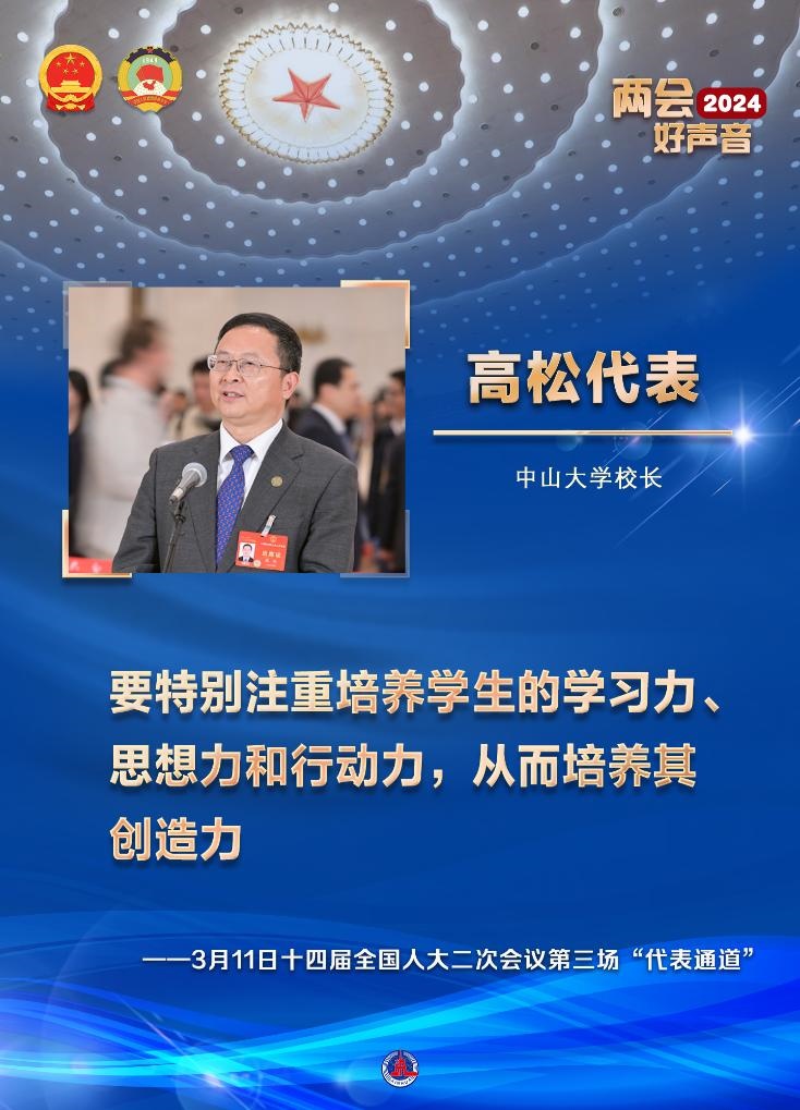 青年人是未來創(chuàng)新的希望。對(duì)于如何培養(yǎng)學(xué)生的創(chuàng)造力,中山大學(xué)校長(zhǎng)高松代表給出了他的答案:要特別注重培養(yǎng)學(xué)生的學(xué)習(xí)力、思想力和行動(dòng)力,從而培養(yǎng)其創(chuàng)造力。