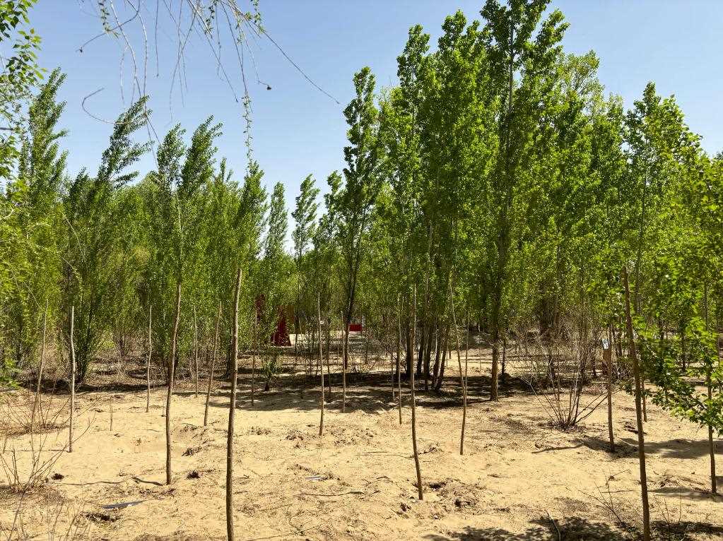 “今年,林場核心作業(yè)區(qū)周邊補植補造1萬多株新疆楊;林場其他作業(yè)區(qū)補植補種300多畝苗木,主要有四季玫瑰、紫穗槐、楊柴、梭梭等,4月下旬已全部種植完畢?!毙氯A林場副場長葛文斌說。
