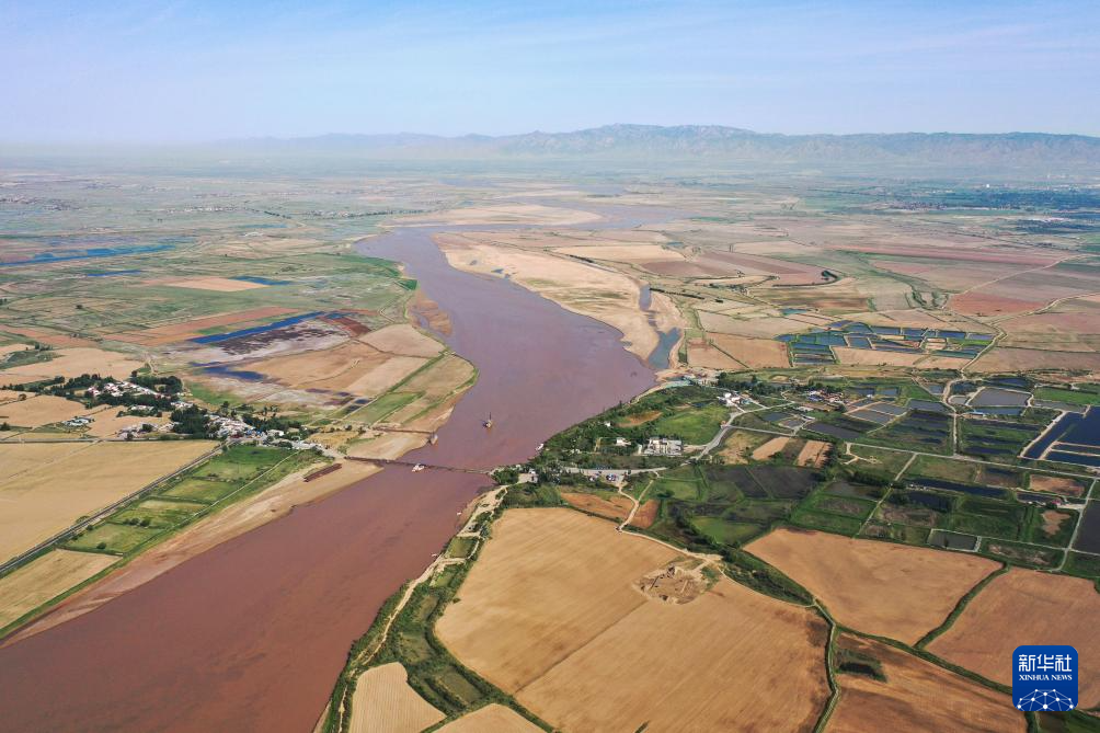 在巴彥淖爾市磴口縣劉拐沙頭,黃河蜿蜒而過(6月5日攝,無人機(jī)照片)新華社記者 連振 攝