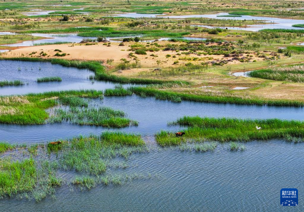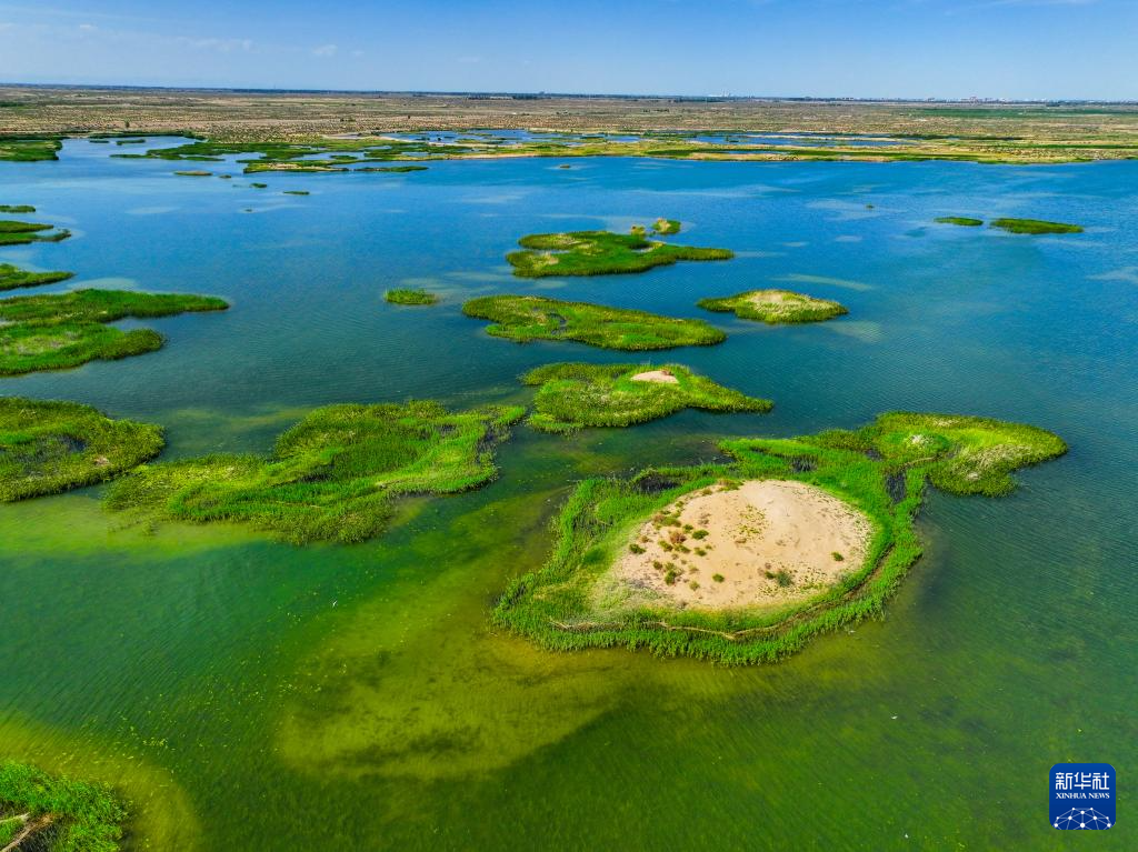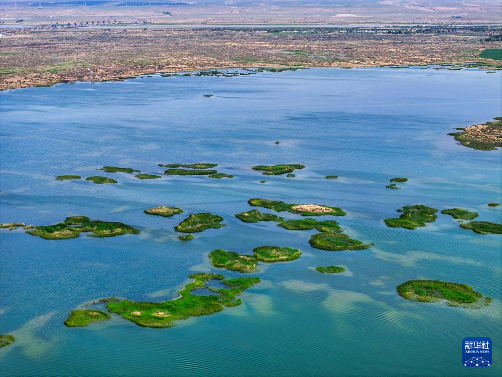 這是位于巴彥淖爾市磴口縣的奈倫湖國(guó)家濕地公園(6月5日攝,無人機(jī)照片)。新華社記者 連振 攝