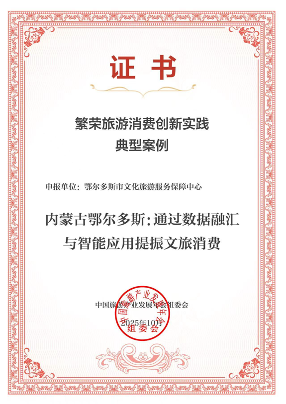 鄂爾多斯市“通過數(shù)據(jù)融匯與智能應(yīng)用提振文旅消費”案例入選2025繁榮旅游消費創(chuàng)新實踐典型案例。