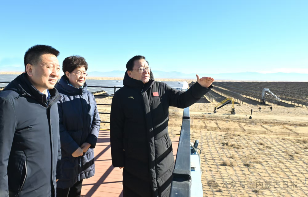 11月17日,自治區(qū)黨委書記王偉中來到騰格里沙漠東南部新能源大基地,認真聽取項目規(guī)劃、建設(shè)和運營等情況介紹。草原云·內(nèi)蒙古新聞網(wǎng)記者 馬建兵 攝