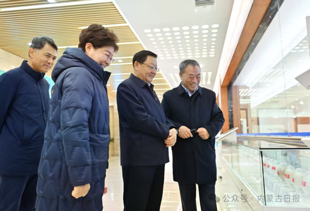 11月18日,自治區(qū)黨委書記王偉中來到中鹽內(nèi)蒙古化工股份有限公司,了解企業(yè)發(fā)展、技術(shù)創(chuàng)新、生產(chǎn)運營等情況。草原云·內(nèi)蒙古新聞網(wǎng)記者 馬建兵 攝
