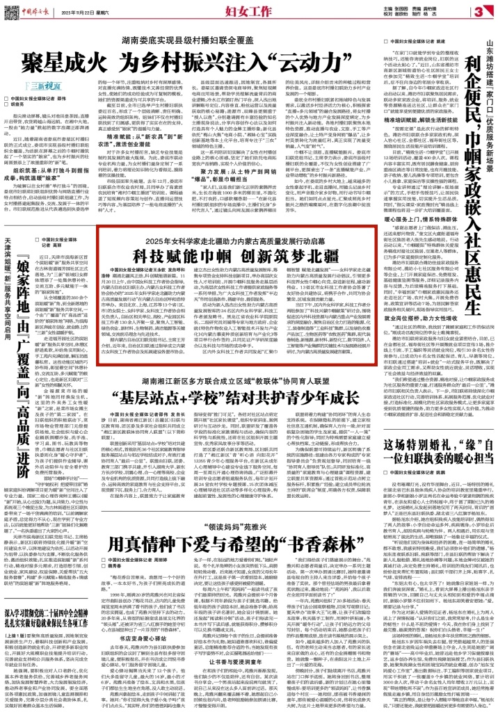 2025年11月22日《中國婦女報》第3版刊發(fā)了《2025年女科學家走北疆助力內蒙古高質量發(fā)展行動啟幕 科技賦能巾幗 創(chuàng)新筑夢北疆》的文章,報道了“2025年女科學家走北疆助力內蒙古高質量發(fā)展行動”在內蒙古自治區(qū)呼和浩特市舉辦,來自13個?。▍^(qū)、市)的女院士、女科學家等130余人齊聚一堂,交流前沿理念與先進技術。