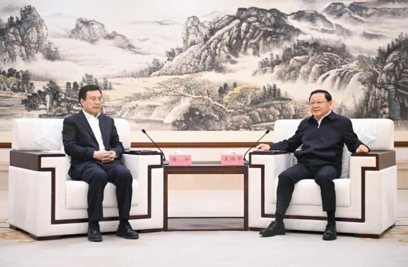 4月12日,自治區(qū)黨委書記、人大常委會(huì)主任王偉中在呼和浩特會(huì)見新華通訊社社長(zhǎng)、黨組書記傅華一行。