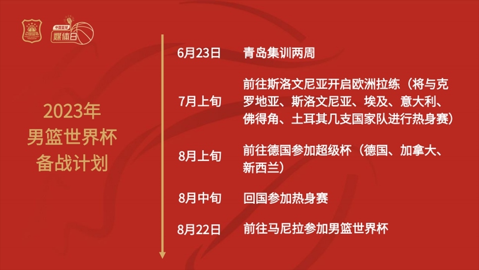 談到中國男籃備戰(zhàn)世界杯的具體規(guī)劃時,徐濟成表示:“球隊將于6月23日在青島開啟為期兩周的集訓(xùn);7月上旬前往斯洛文尼亞開啟歐洲拉練,將與克羅地亞、斯洛文尼亞、埃及、意大利、佛得角、土耳其幾支國家隊進行熱身賽;8月上旬前往德國參加超級杯,對手包括德國、加拿大、新西蘭;8月中旬回國參加1-2場熱身賽后,將前往馬尼拉參加男籃世界杯。”
