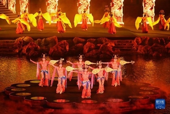 8月26日,演員在北戴河碧螺塔酒吧公園為游客表演大型實(shí)景秀《浪淘沙·北戴河》。