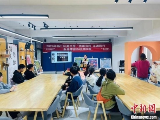 圖為綦江農(nóng)民版畫走進(jìn)校園活動現(xiàn)場。 綦江農(nóng)民版畫院 供圖