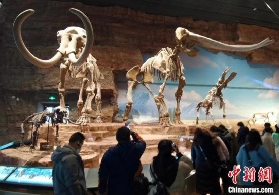 1月3日,中國(guó)古動(dòng)物館(保定自然博物館)展出的草原猛犸象化石骨架。呂子豪 攝