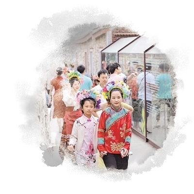 在梧林傳統(tǒng)村落,200多幢承載鄉(xiāng)愁的百年建筑散落其間,游客熙熙攘攘。放眼望去,傳統(tǒng)簪花已成為泉州文旅新風(fēng)尚。無(wú)論是在百年榕樹下,還是古厝街巷里,隨處可見頭戴簪花的游客。