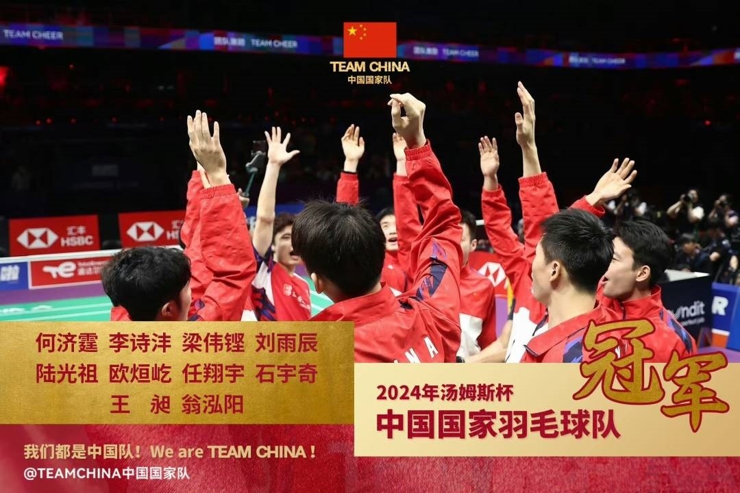 2024年湯尤杯賽5月5日在四川成都迎來收官日。在剛剛結(jié)束的湯姆斯杯決賽中,由石宇奇、梁偉鏗/王昶、李詩灃、何濟(jì)霆/任翔宇出場的中國男隊(duì)以總比分3-1戰(zhàn)勝印尼男隊(duì),重奪冠軍!