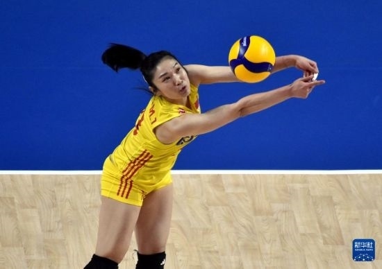 6月15日,中國(guó)隊(duì)球員王夢(mèng)潔在比賽中墊球。新華社記者盧炳輝攝