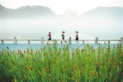 健身愛(ài)好者在浙江省建德市新安江畔的新安綠道上跑步。寧文武攝(新華社發(fā))