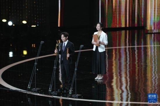 10月20日,何炅(左)獲最佳電視節(jié)目主持人。
