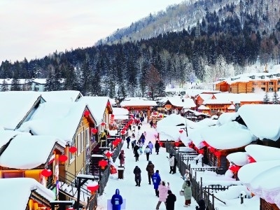 “中國冰雪在龍江,龍江盛雪在雪鄉(xiāng)?!眮碜载惣訝柡睦淇諝饽舷?,與北上的日本海暖濕氣流在此地交匯,造就了雪鄉(xiāng)“夏無三日晴,冬雪漫林間”的獨(dú)特氣候。步入雪鄉(xiāng),獨(dú)特的建筑風(fēng)貌格外引人注目。在厚厚的積雪中,一幢幢小木屋錯(cuò)落分布,像是埋在雪地之中。游客行走在這里,宛如身處冰雪紛飛的童話之鄉(xiāng)。